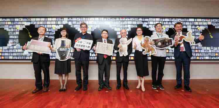 尊龙集团携手创利空间为故宫建置的智慧文物互动导览墙及轮播墙,,,,今日正式启用。。(左四:尊龙集团新事业暨投资管理总部副总经理杨本豫、、、右四:故宫博物院院长吴密察、、右三:太极影音董事长黄宝云)