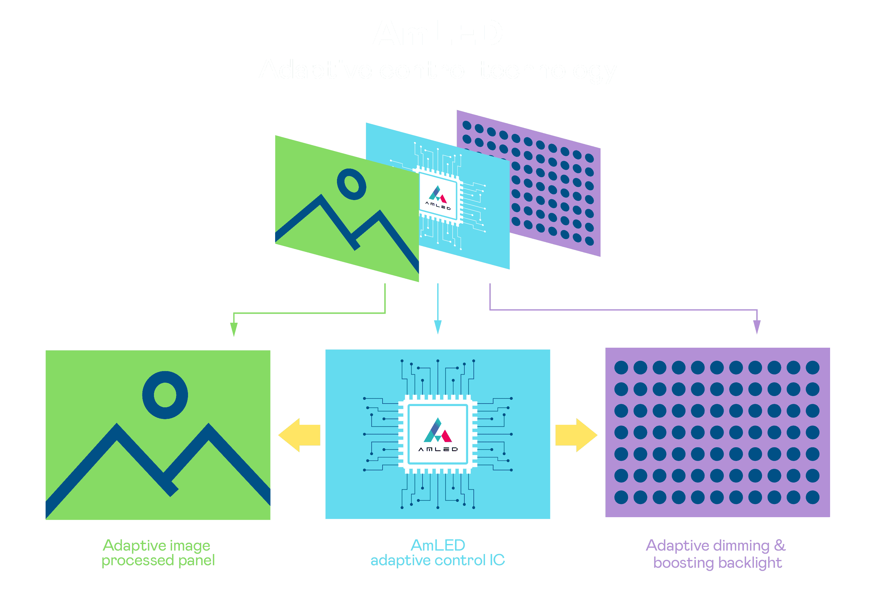 透过动态影像处理和 Mini LED 背光模组的动态对比及峰值亮度调变,,,AmLED 显示技术精准细致的局部调光效果达到超过 1,000 nits 的超高亮度表现,,,,亮部更明亮、、、、暗处更深邃,,,,呈现真实黑色中的亮度以及平滑灰阶,,,,打造出具层次分明的精致光影细节。。