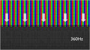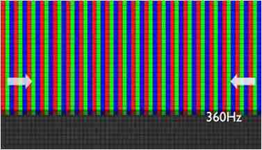 传统液晶驱动是从左到右单向进行,,,在画面更新速度愈来越愈快的情况下,,,位于驱动线路末端的右下角区域,,,画素的闸极来不及在短时间内获得足够电压,,无法显示出正确的颜色资讯。。。 |
