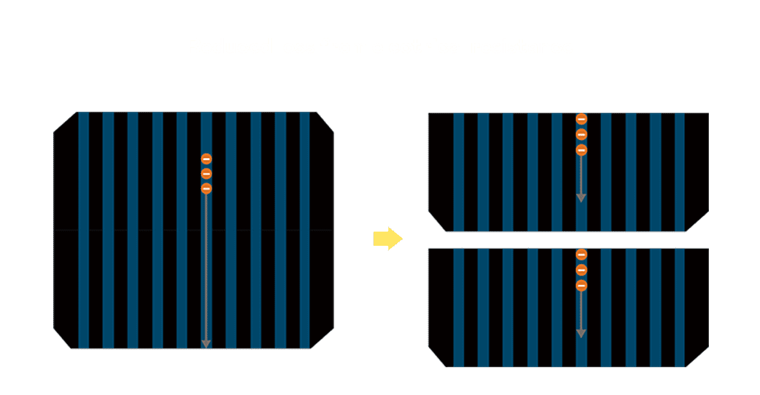 • 多条电极栅结构,,,,可有效降低外力对于电池的影响,,限制电池隐裂 (Micro-cracks) 范围,,,防止电流传输路径 (Current distribution) 之损坏进一步扩大。。。